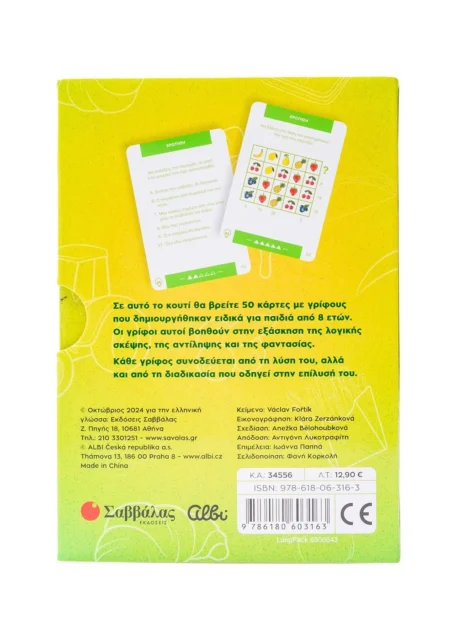 Σε αυτό το κουτί θα βρείτε 50 κάρτες με γρίφους που δημιουργήθηκαν ειδικά για παιδιά από 8 ετών.